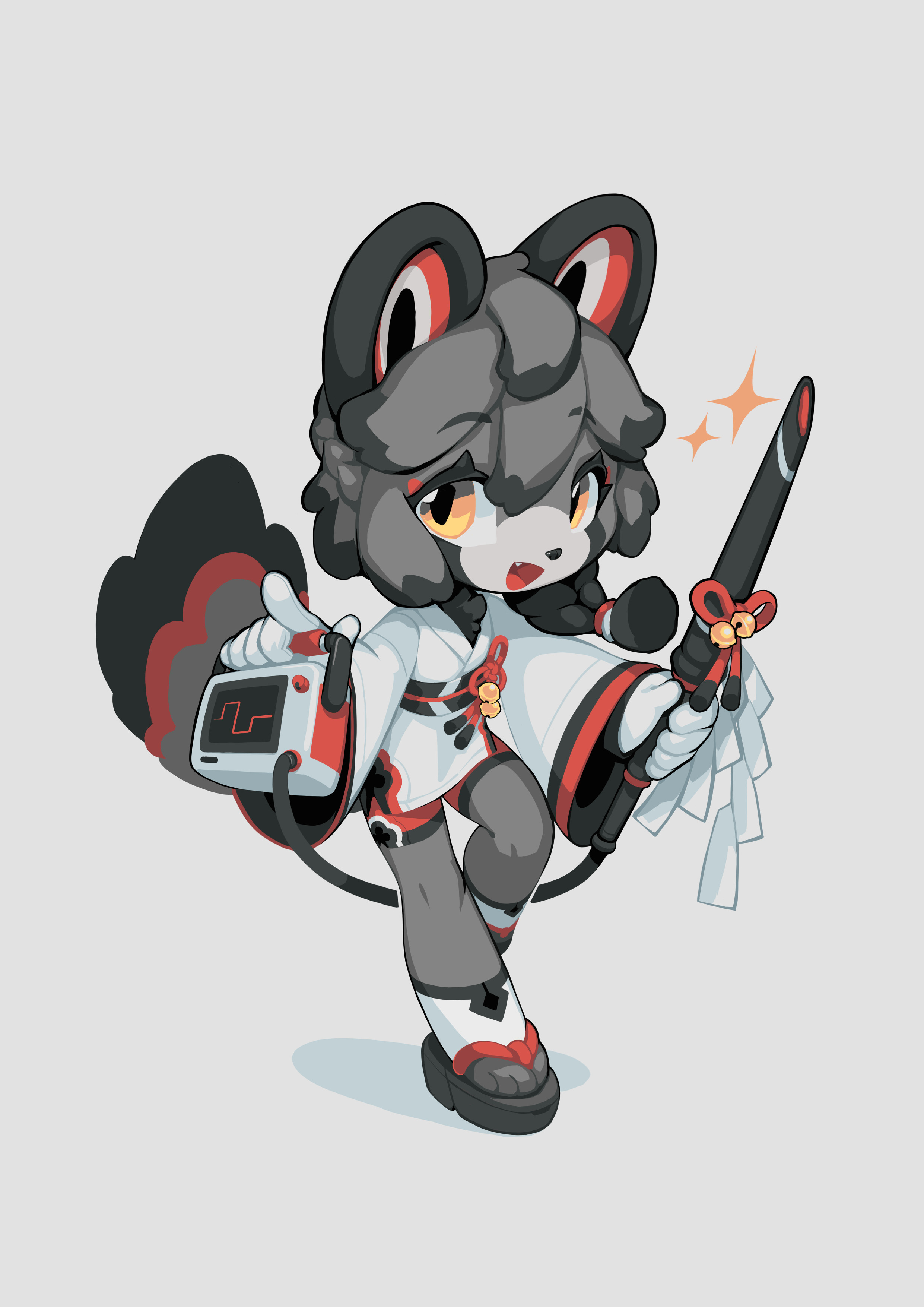 > > There's a lot of toolage in Krita that has some "physicality" to it I think, so my idea would be theming the pictures around that. Like, a brush, a paint bucket, a layer stack etc. are all things that you can make Kiki interact with as if they were physical objects and users are likely to make the connection to both Krita and themselves using it right away.